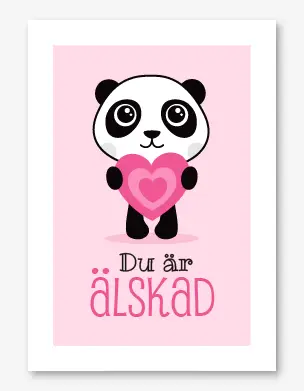 Många motiv både med och utan anpassningsbar text, tavlor med budskap eller barnets namn, söta djurmotiv mm